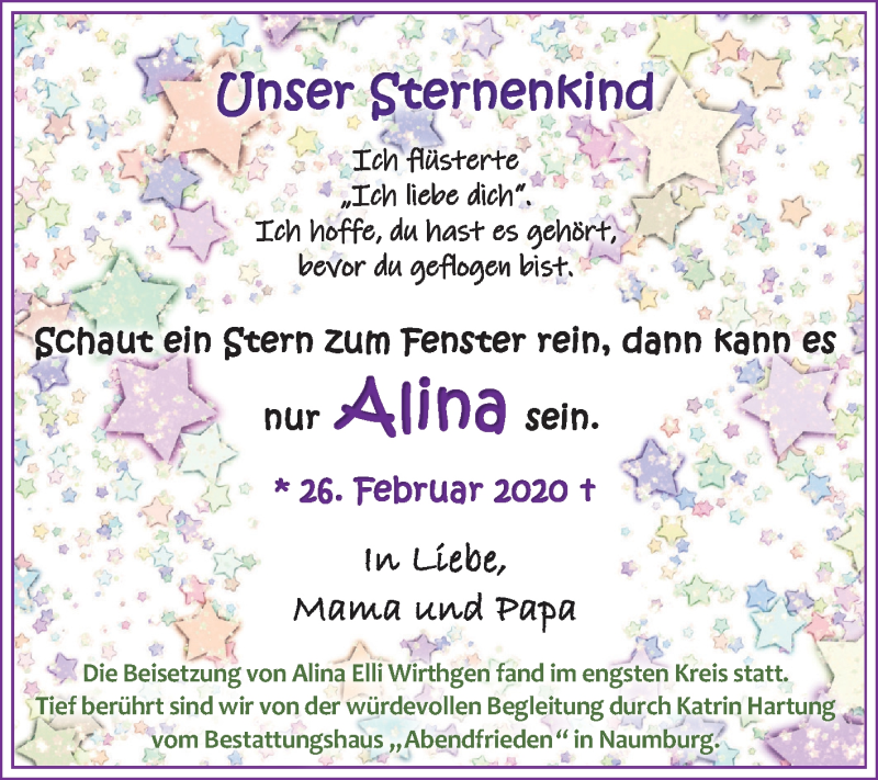 Hier finden Sie alle Traueranzeigen aus der Zeitung, die bisher für Alina sein erschienen sind. Weitere Traueranzeigen, die in der Zeitung erscheinen, werden hier ebenfalls aufgelistet