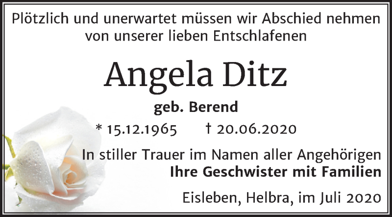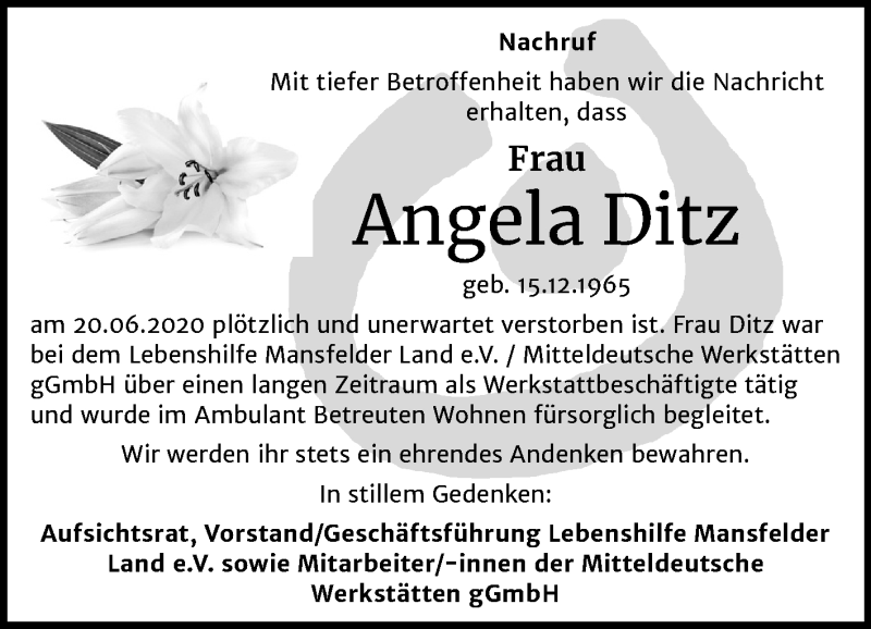 Hier finden Sie alle Traueranzeigen aus der Zeitung, die bisher für Angela Ditz erschienen sind. Weitere Traueranzeigen, die in der Zeitung erscheinen, werden hier ebenfalls aufgelistet