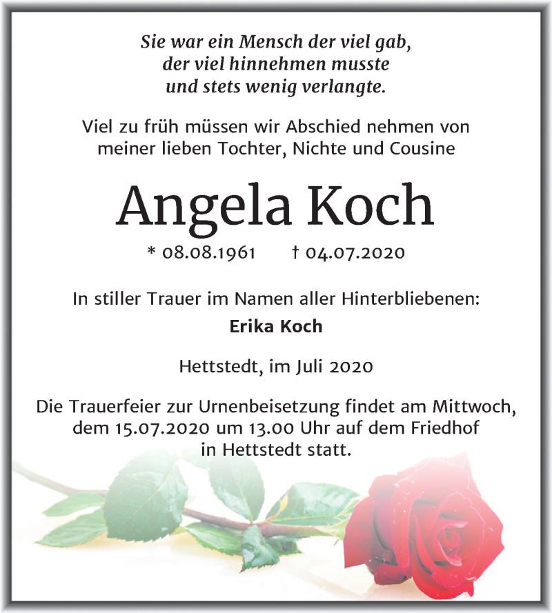 Hier finden Sie alle Traueranzeigen aus der Zeitung, die bisher für Angela Koch erschienen sind. Weitere Traueranzeigen, die in der Zeitung erscheinen, werden hier ebenfalls aufgelistet