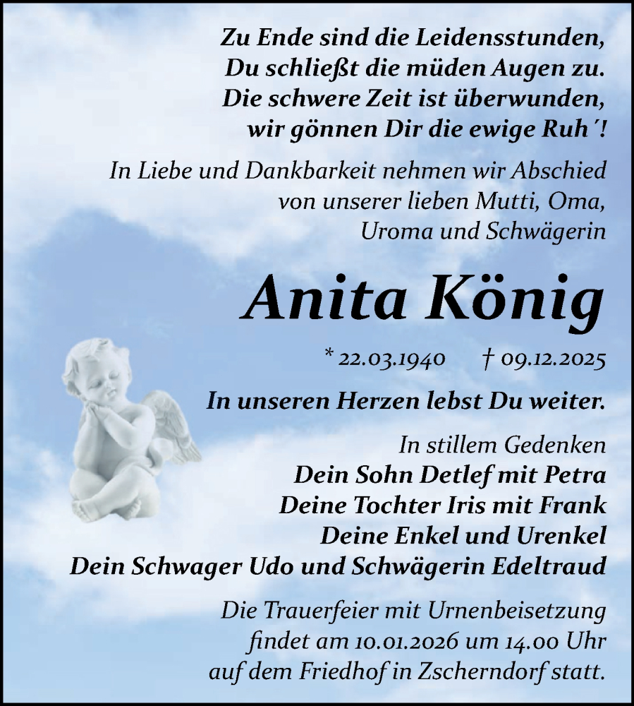 Hier finden Sie alle Traueranzeigen aus der Zeitung, die bisher für Anita König erschienen sind. Weitere Traueranzeigen, die in der Zeitung erscheinen, werden hier ebenfalls aufgelistet
