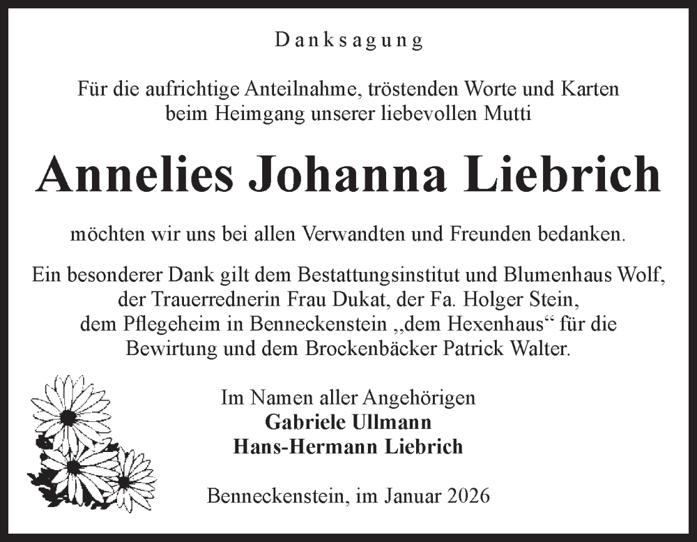Hier finden Sie alle Traueranzeigen aus der Zeitung, die bisher für Annelies Johanna Liebrich erschienen sind. Weitere Traueranzeigen, die in der Zeitung erscheinen, werden hier ebenfalls aufgelistet