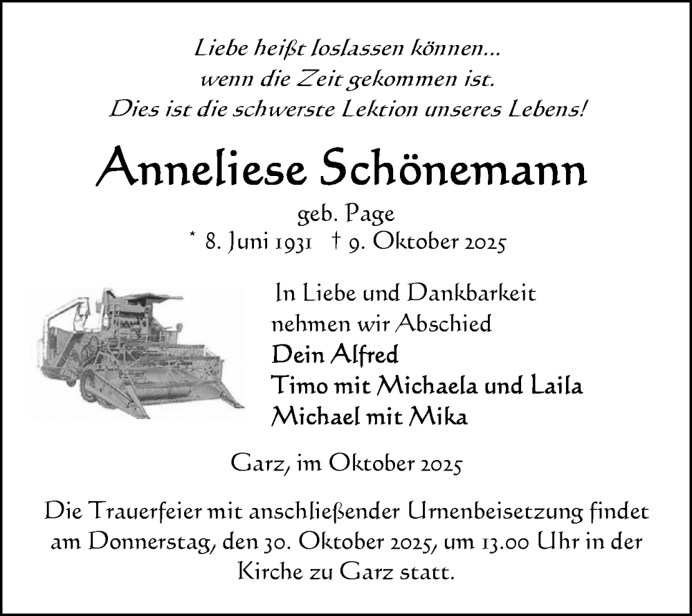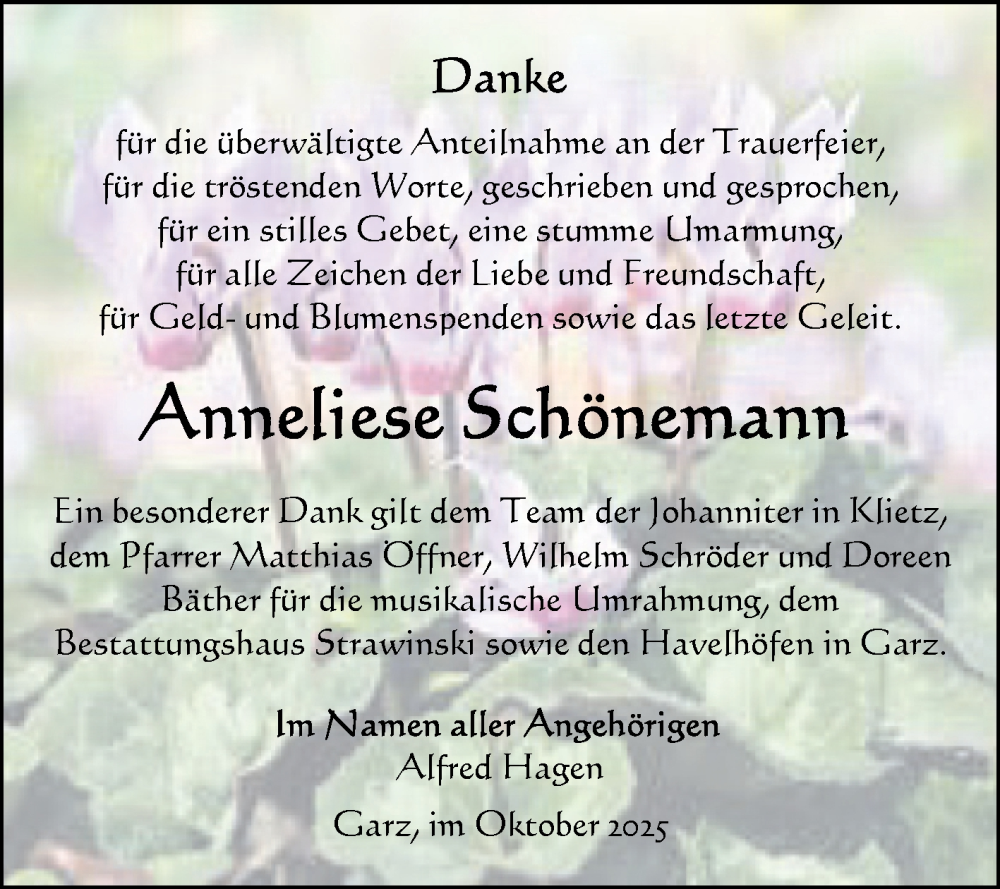 Hier finden Sie alle Traueranzeigen aus der Zeitung, die bisher für Anneliese Schönemann erschienen sind. Weitere Traueranzeigen, die in der Zeitung erscheinen, werden hier ebenfalls aufgelistet