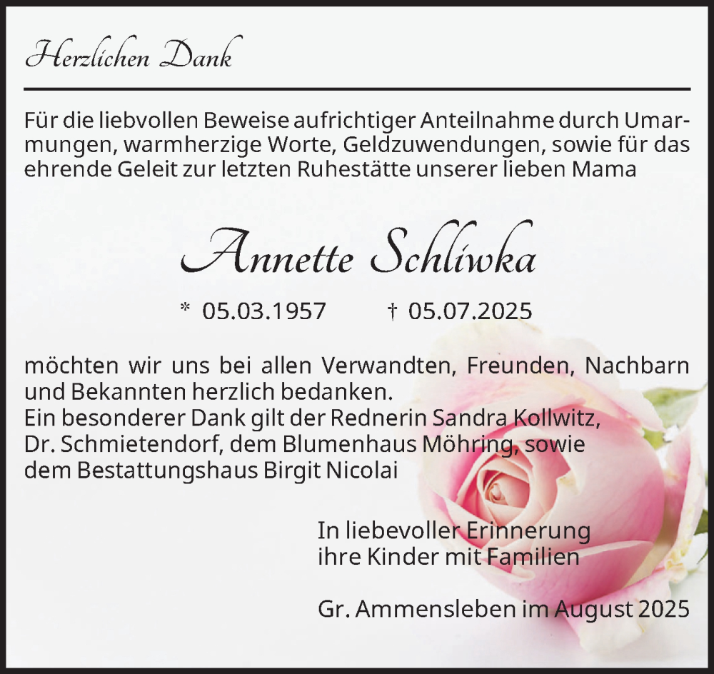 Hier finden Sie alle Traueranzeigen aus der Zeitung, die bisher für Annette Schliwka erschienen sind. Weitere Traueranzeigen, die in der Zeitung erscheinen, werden hier ebenfalls aufgelistet