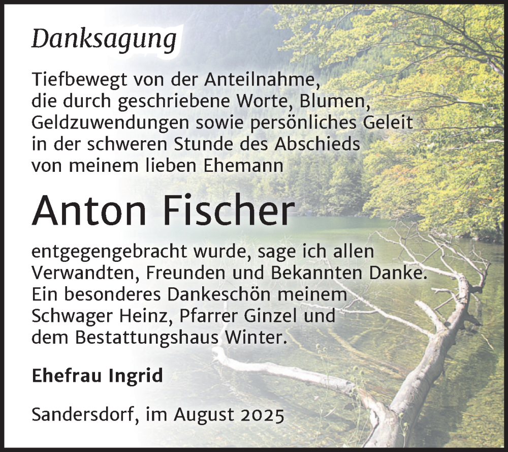 Hier finden Sie alle Traueranzeigen aus der Zeitung, die bisher für Anton Fischer erschienen sind. Weitere Traueranzeigen, die in der Zeitung erscheinen, werden hier ebenfalls aufgelistet