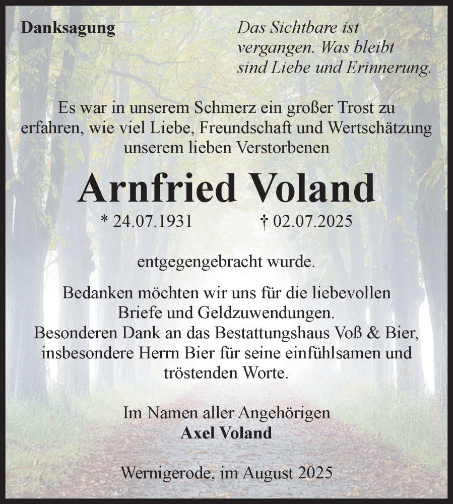 Hier finden Sie alle Traueranzeigen aus der Zeitung, die bisher für Arnfried Voland erschienen sind. Weitere Traueranzeigen, die in der Zeitung erscheinen, werden hier ebenfalls aufgelistet