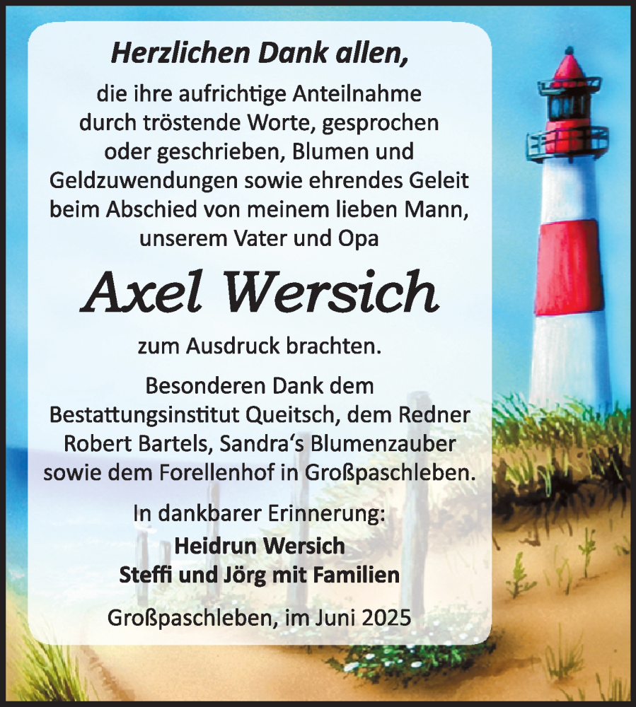 Hier finden Sie alle Traueranzeigen aus der Zeitung, die bisher für Axel Wersich erschienen sind. Weitere Traueranzeigen, die in der Zeitung erscheinen, werden hier ebenfalls aufgelistet