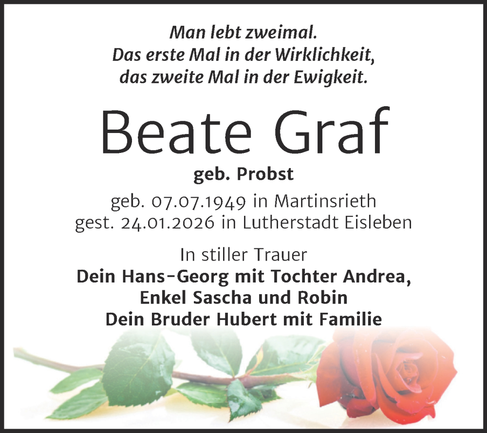 Hier finden Sie alle Traueranzeigen aus der Zeitung, die bisher für Beate Graf erschienen sind. Weitere Traueranzeigen, die in der Zeitung erscheinen, werden hier ebenfalls aufgelistet