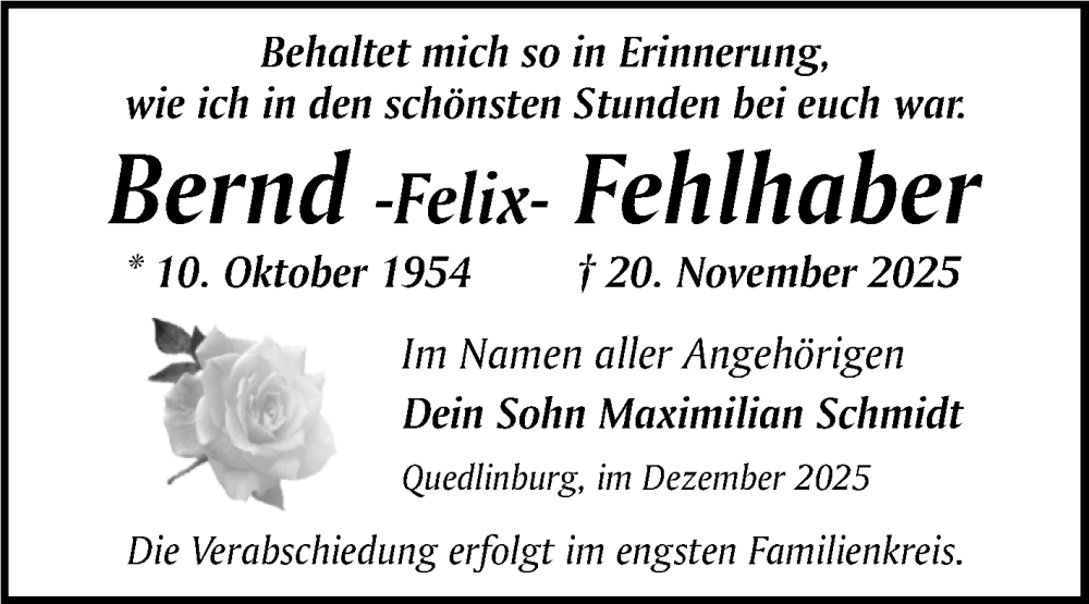Hier finden Sie alle Traueranzeigen aus der Zeitung, die bisher für Bernd Felix Fehlhaber erschienen sind. Weitere Traueranzeigen, die in der Zeitung erscheinen, werden hier ebenfalls aufgelistet
