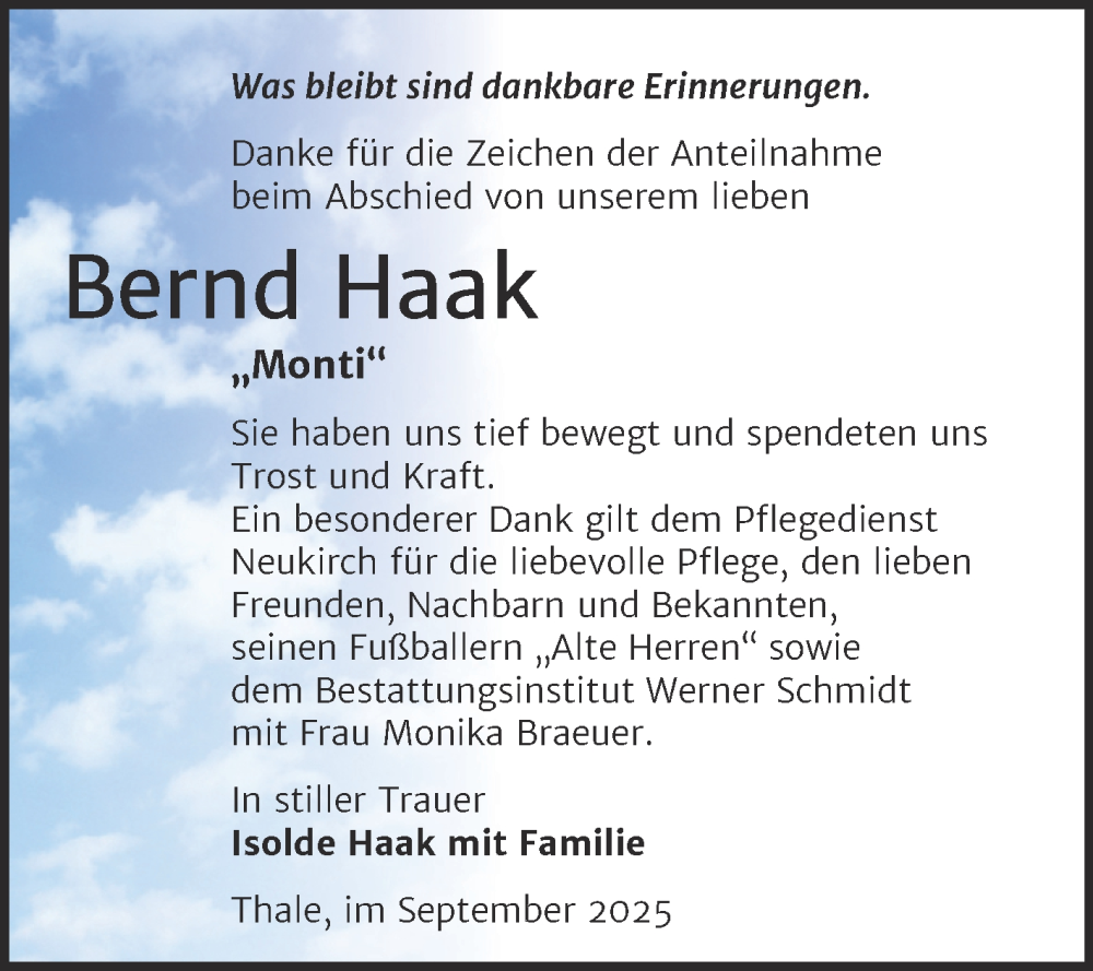 Hier finden Sie alle Traueranzeigen aus der Zeitung, die bisher für Bernd Haak erschienen sind. Weitere Traueranzeigen, die in der Zeitung erscheinen, werden hier ebenfalls aufgelistet