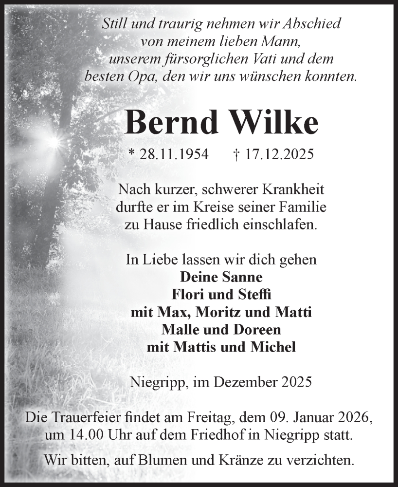 Hier finden Sie alle Traueranzeigen aus der Zeitung, die bisher für Bernd Wilke erschienen sind. Weitere Traueranzeigen, die in der Zeitung erscheinen, werden hier ebenfalls aufgelistet
