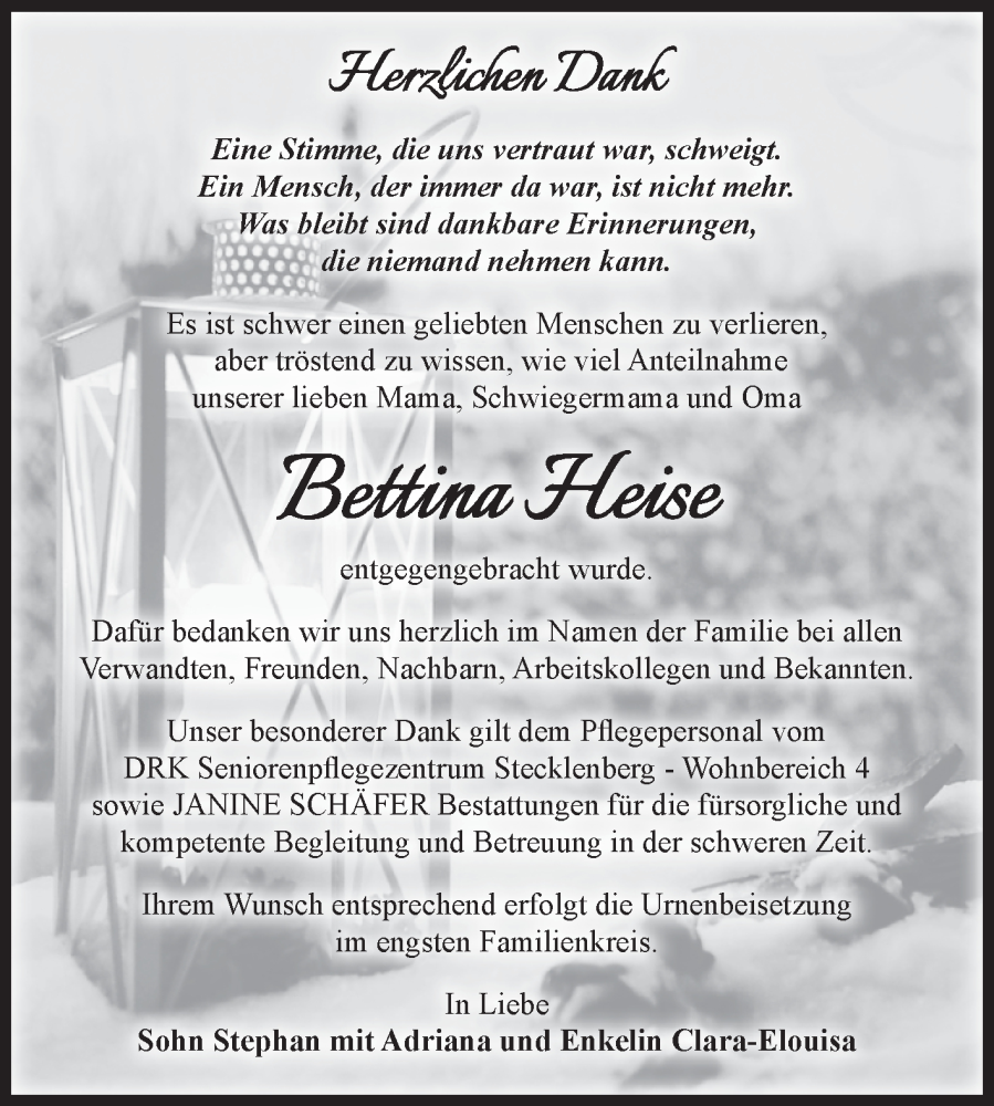 Hier finden Sie alle Traueranzeigen aus der Zeitung, die bisher für Bettina Heise erschienen sind. Weitere Traueranzeigen, die in der Zeitung erscheinen, werden hier ebenfalls aufgelistet