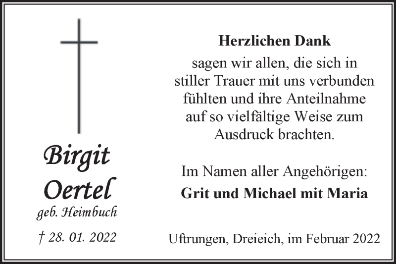 Hier finden Sie alle Traueranzeigen aus der Zeitung, die bisher für Birgit Oertel erschienen sind. Weitere Traueranzeigen, die in der Zeitung erscheinen, werden hier ebenfalls aufgelistet