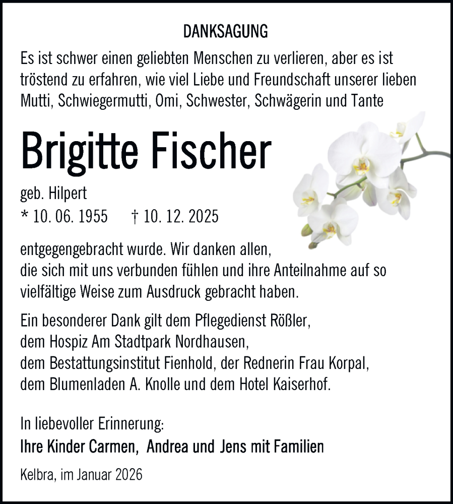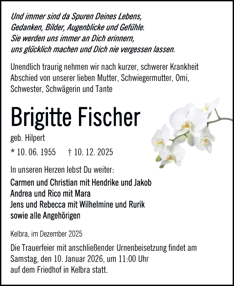Hier finden Sie alle Traueranzeigen aus der Zeitung, die bisher für Brigitte Fischer erschienen sind. Weitere Traueranzeigen, die in der Zeitung erscheinen, werden hier ebenfalls aufgelistet