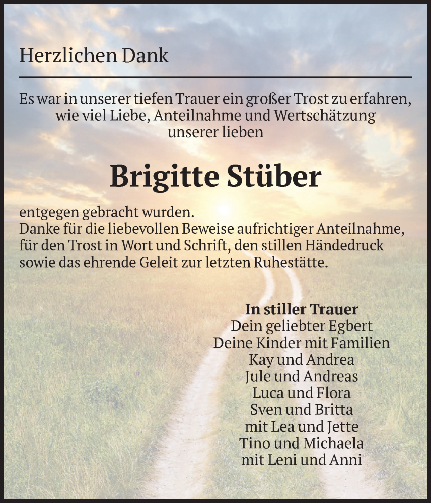 Hier finden Sie alle Traueranzeigen aus der Zeitung, die bisher für Brigitte Stüber erschienen sind. Weitere Traueranzeigen, die in der Zeitung erscheinen, werden hier ebenfalls aufgelistet