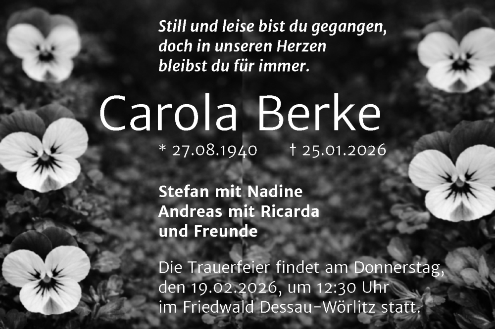 Hier finden Sie alle Traueranzeigen aus der Zeitung, die bisher für Carola Berke erschienen sind. Weitere Traueranzeigen, die in der Zeitung erscheinen, werden hier ebenfalls aufgelistet