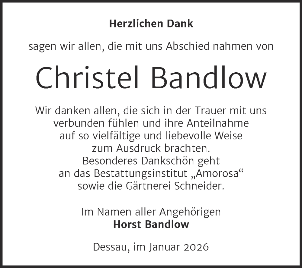 Hier finden Sie alle Traueranzeigen aus der Zeitung, die bisher für Christel Bandlow erschienen sind. Weitere Traueranzeigen, die in der Zeitung erscheinen, werden hier ebenfalls aufgelistet