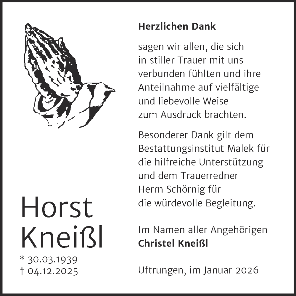 Hier finden Sie alle Traueranzeigen aus der Zeitung, die bisher für Christel Kneißl erschienen sind. Weitere Traueranzeigen, die in der Zeitung erscheinen, werden hier ebenfalls aufgelistet