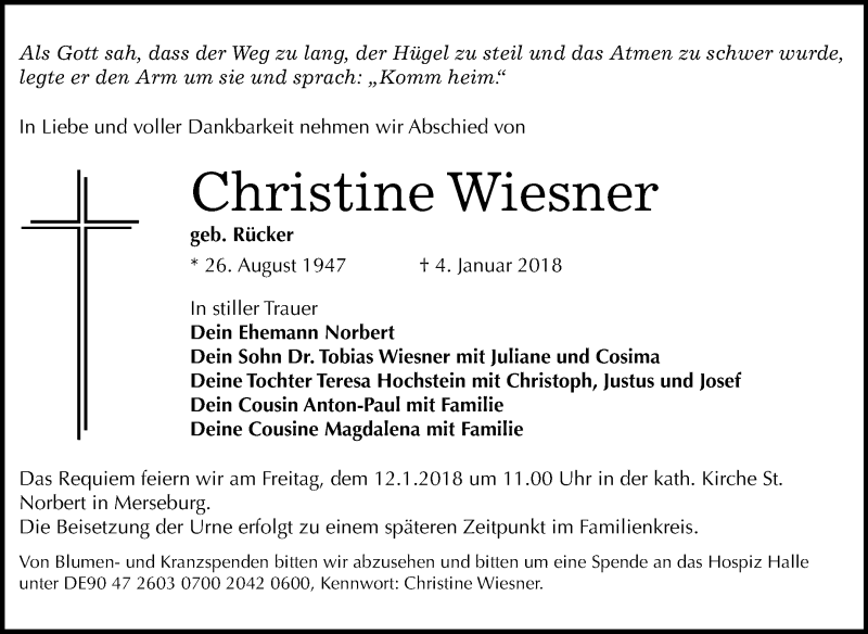Hier finden Sie alle Traueranzeigen aus der Zeitung, die bisher für Christine Wiesner erschienen sind. Weitere Traueranzeigen, die in der Zeitung erscheinen, werden hier ebenfalls aufgelistet