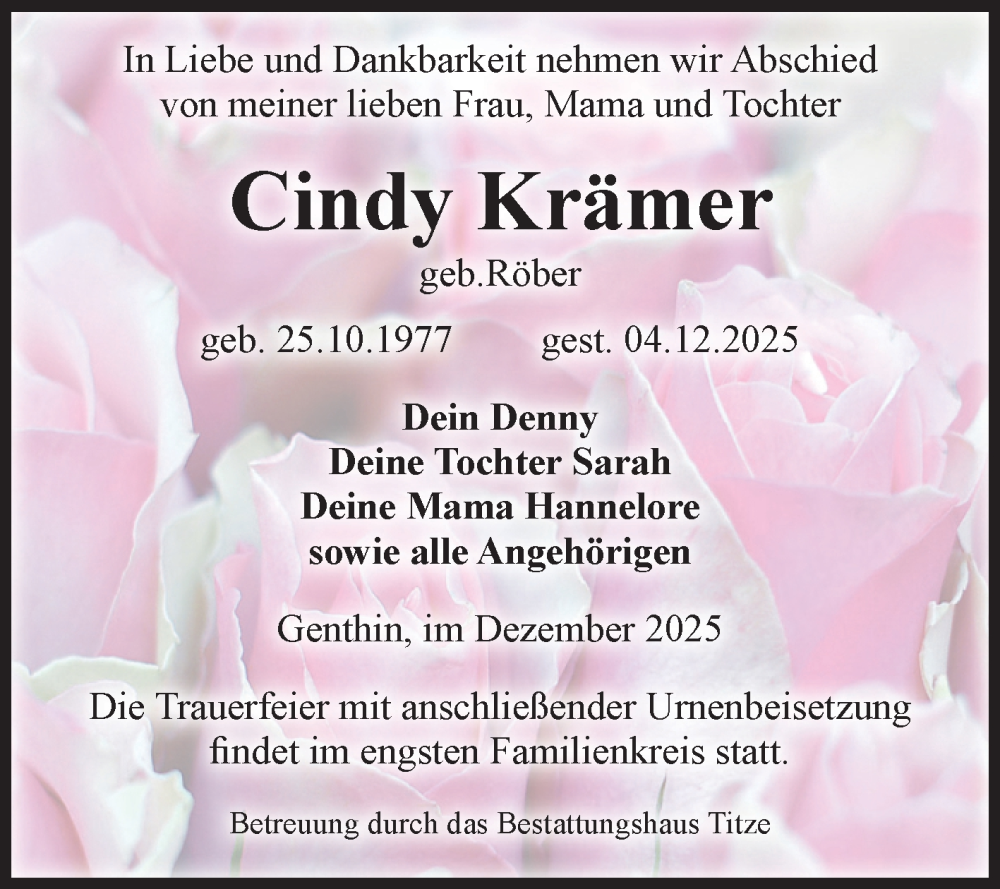 Hier finden Sie alle Traueranzeigen aus der Zeitung, die bisher für Cindy Krämer erschienen sind. Weitere Traueranzeigen, die in der Zeitung erscheinen, werden hier ebenfalls aufgelistet