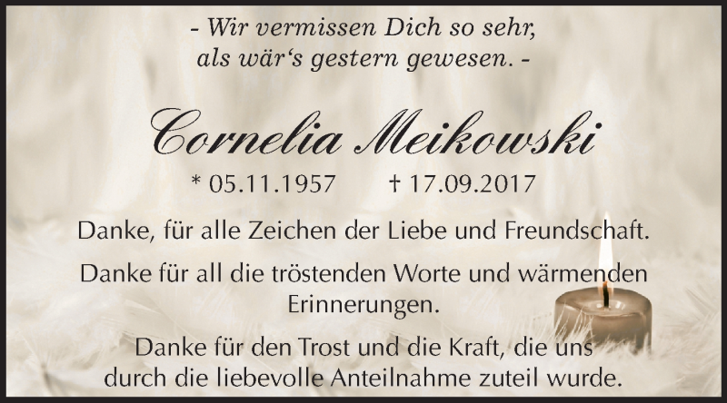 Hier finden Sie alle Traueranzeigen aus der Zeitung, die bisher für Cornelia Meikowski erschienen sind. Weitere Traueranzeigen, die in der Zeitung erscheinen, werden hier ebenfalls aufgelistet