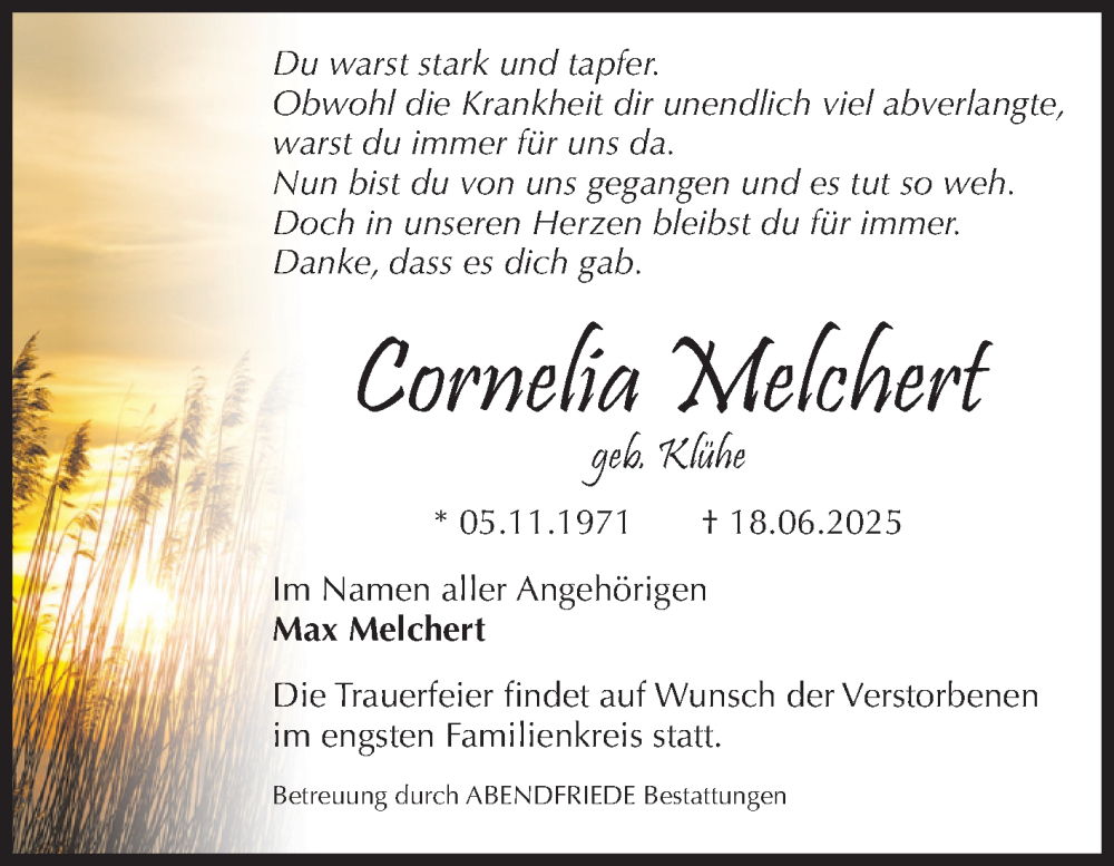 Hier finden Sie alle Traueranzeigen aus der Zeitung, die bisher für Cornelia Melchert erschienen sind. Weitere Traueranzeigen, die in der Zeitung erscheinen, werden hier ebenfalls aufgelistet