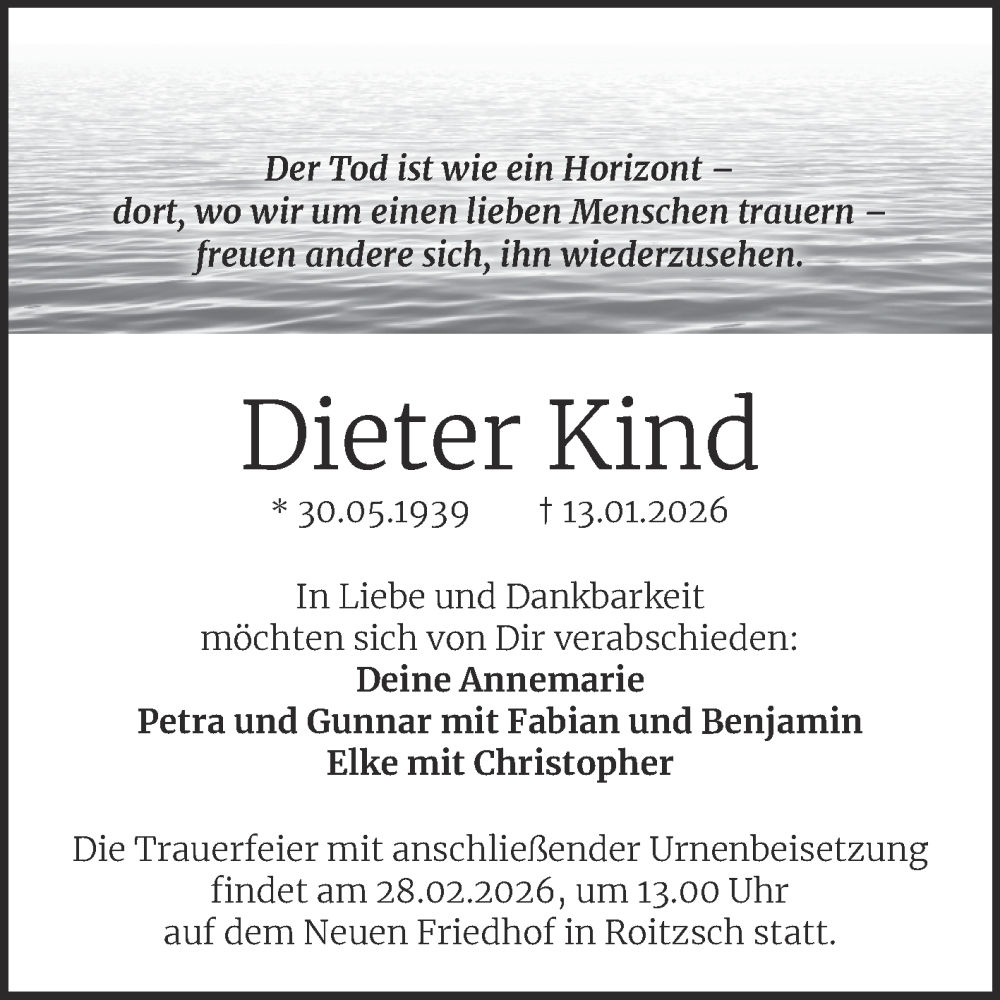Hier finden Sie alle Traueranzeigen aus der Zeitung, die bisher für Dieter Kind erschienen sind. Weitere Traueranzeigen, die in der Zeitung erscheinen, werden hier ebenfalls aufgelistet