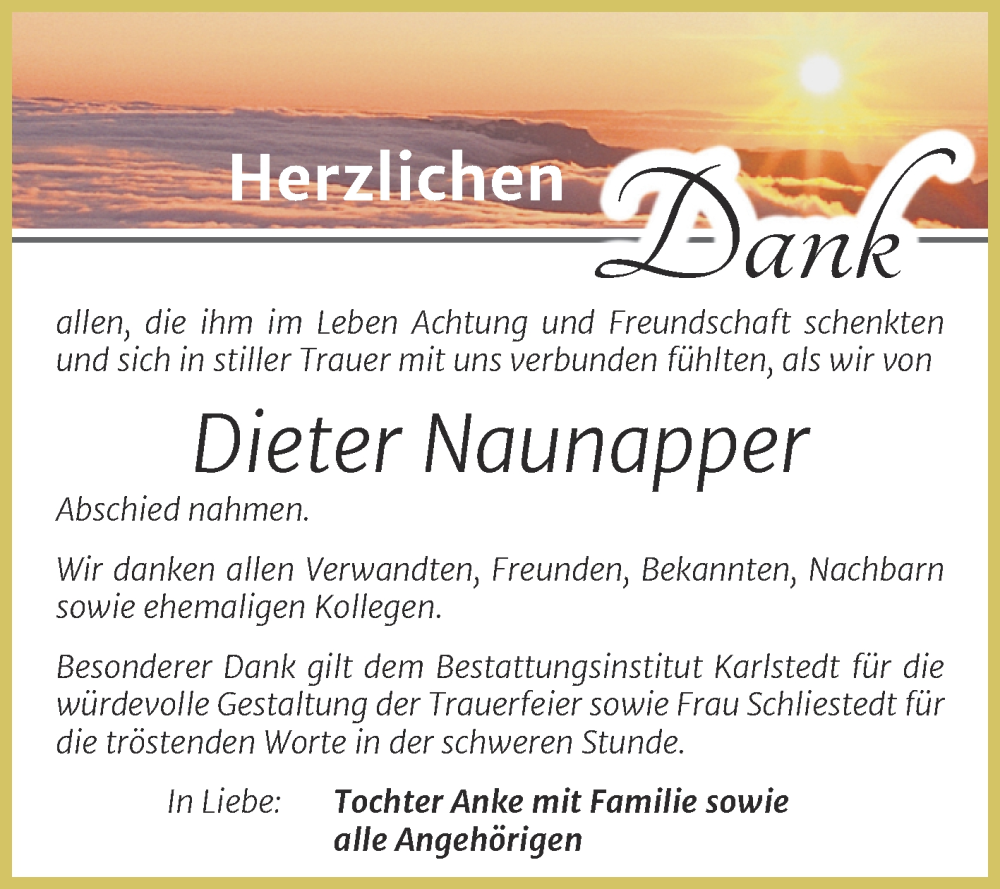 Hier finden Sie alle Traueranzeigen aus der Zeitung, die bisher für Dieter Naunapper erschienen sind. Weitere Traueranzeigen, die in der Zeitung erscheinen, werden hier ebenfalls aufgelistet