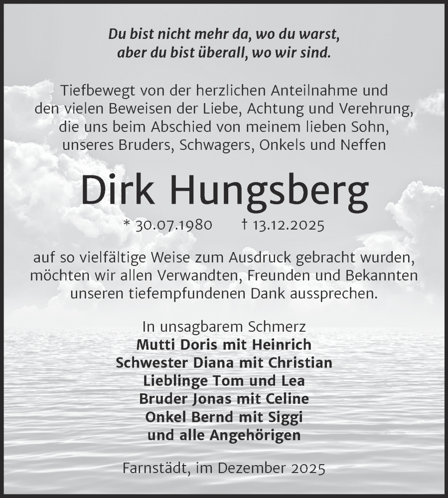 Hier finden Sie alle Traueranzeigen aus der Zeitung, die bisher für Dirk Hungsberg erschienen sind. Weitere Traueranzeigen, die in der Zeitung erscheinen, werden hier ebenfalls aufgelistet