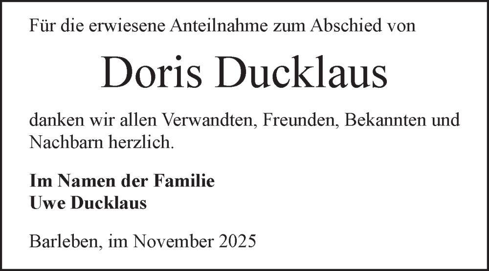 Hier finden Sie alle Traueranzeigen aus der Zeitung, die bisher für Doris Ducklaus erschienen sind. Weitere Traueranzeigen, die in der Zeitung erscheinen, werden hier ebenfalls aufgelistet