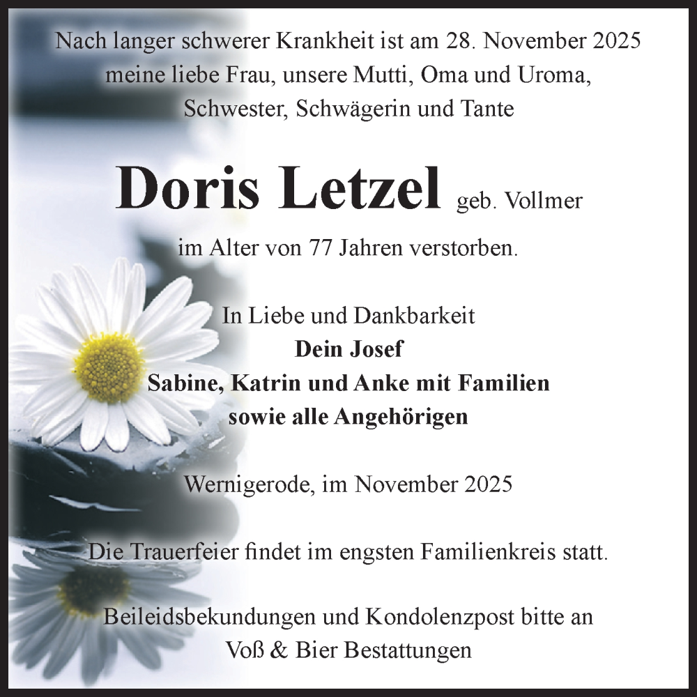 Hier finden Sie alle Traueranzeigen aus der Zeitung, die bisher für Doris Letzel erschienen sind. Weitere Traueranzeigen, die in der Zeitung erscheinen, werden hier ebenfalls aufgelistet