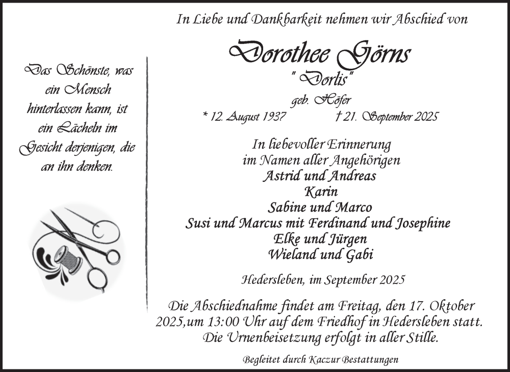 Hier finden Sie alle Traueranzeigen aus der Zeitung, die bisher für Dorothee Görns erschienen sind. Weitere Traueranzeigen, die in der Zeitung erscheinen, werden hier ebenfalls aufgelistet