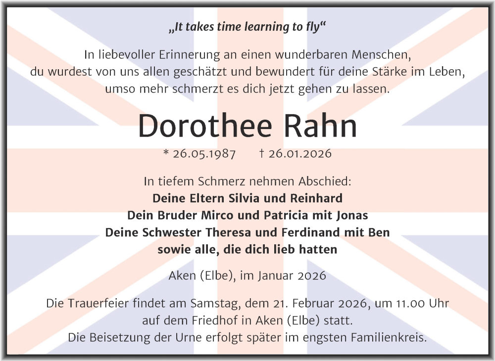 Hier finden Sie alle Traueranzeigen aus der Zeitung, die bisher für Dorothee Rahn erschienen sind. Weitere Traueranzeigen, die in der Zeitung erscheinen, werden hier ebenfalls aufgelistet