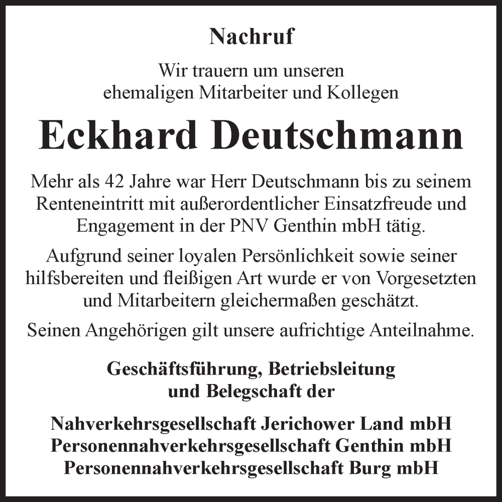 Hier finden Sie alle Traueranzeigen aus der Zeitung, die bisher für Eckhard Deutschmann erschienen sind. Weitere Traueranzeigen, die in der Zeitung erscheinen, werden hier ebenfalls aufgelistet