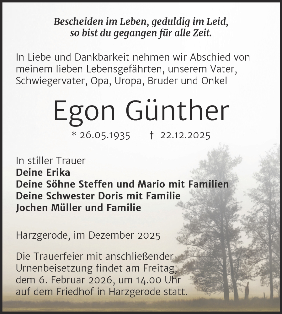 Hier finden Sie alle Traueranzeigen aus der Zeitung, die bisher für Egon Günther erschienen sind. Weitere Traueranzeigen, die in der Zeitung erscheinen, werden hier ebenfalls aufgelistet