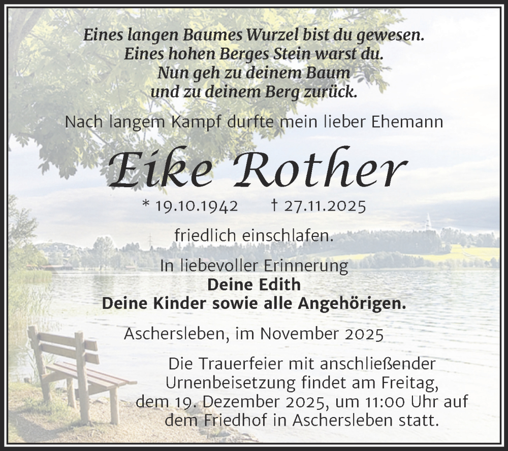 Hier finden Sie alle Traueranzeigen aus der Zeitung, die bisher für Eike Rother erschienen sind. Weitere Traueranzeigen, die in der Zeitung erscheinen, werden hier ebenfalls aufgelistet