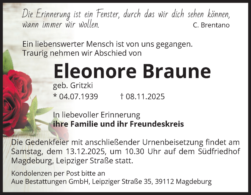 Hier finden Sie alle Traueranzeigen aus der Zeitung, die bisher für Eleonore Braune erschienen sind. Weitere Traueranzeigen, die in der Zeitung erscheinen, werden hier ebenfalls aufgelistet