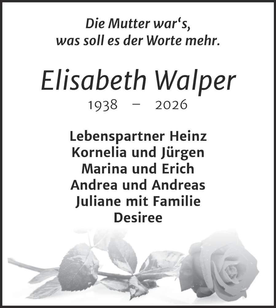 Hier finden Sie alle Traueranzeigen aus der Zeitung, die bisher für Elisabeth Walper erschienen sind. Weitere Traueranzeigen, die in der Zeitung erscheinen, werden hier ebenfalls aufgelistet