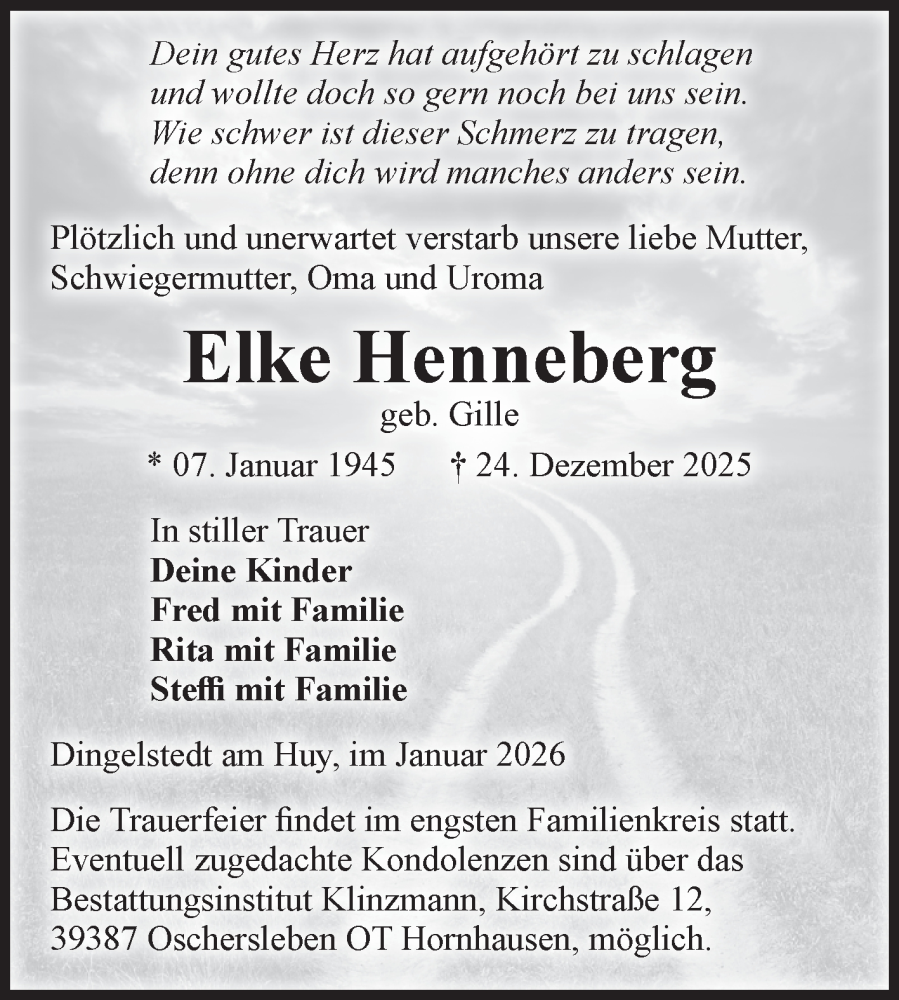 Hier finden Sie alle Traueranzeigen aus der Zeitung, die bisher für Elke Henneberg erschienen sind. Weitere Traueranzeigen, die in der Zeitung erscheinen, werden hier ebenfalls aufgelistet