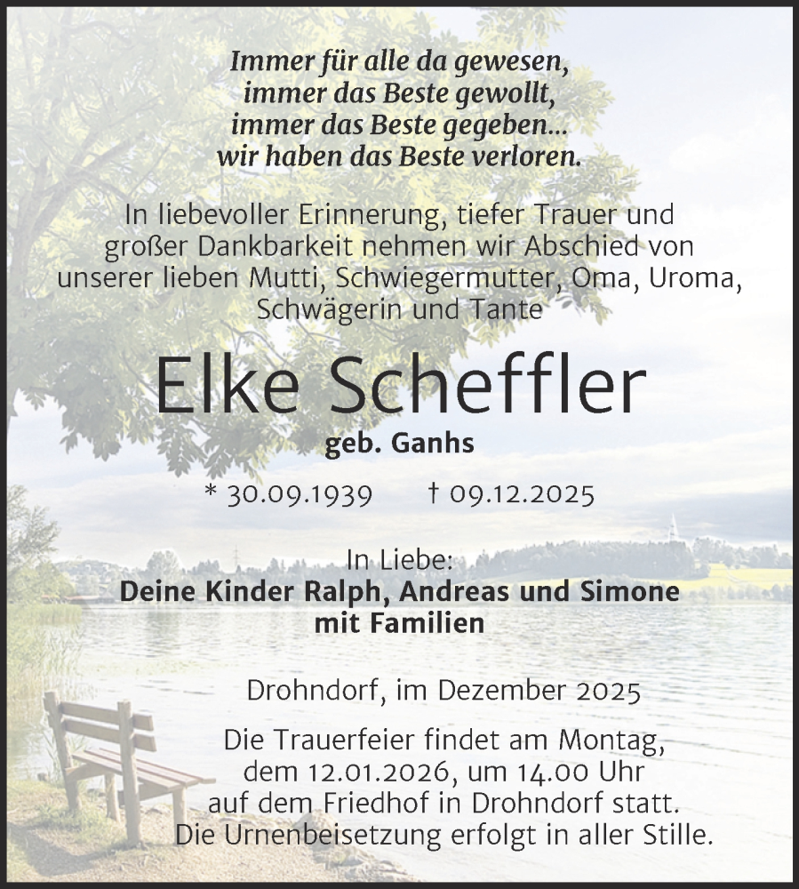 Hier finden Sie alle Traueranzeigen aus der Zeitung, die bisher für Elke Scheffler erschienen sind. Weitere Traueranzeigen, die in der Zeitung erscheinen, werden hier ebenfalls aufgelistet