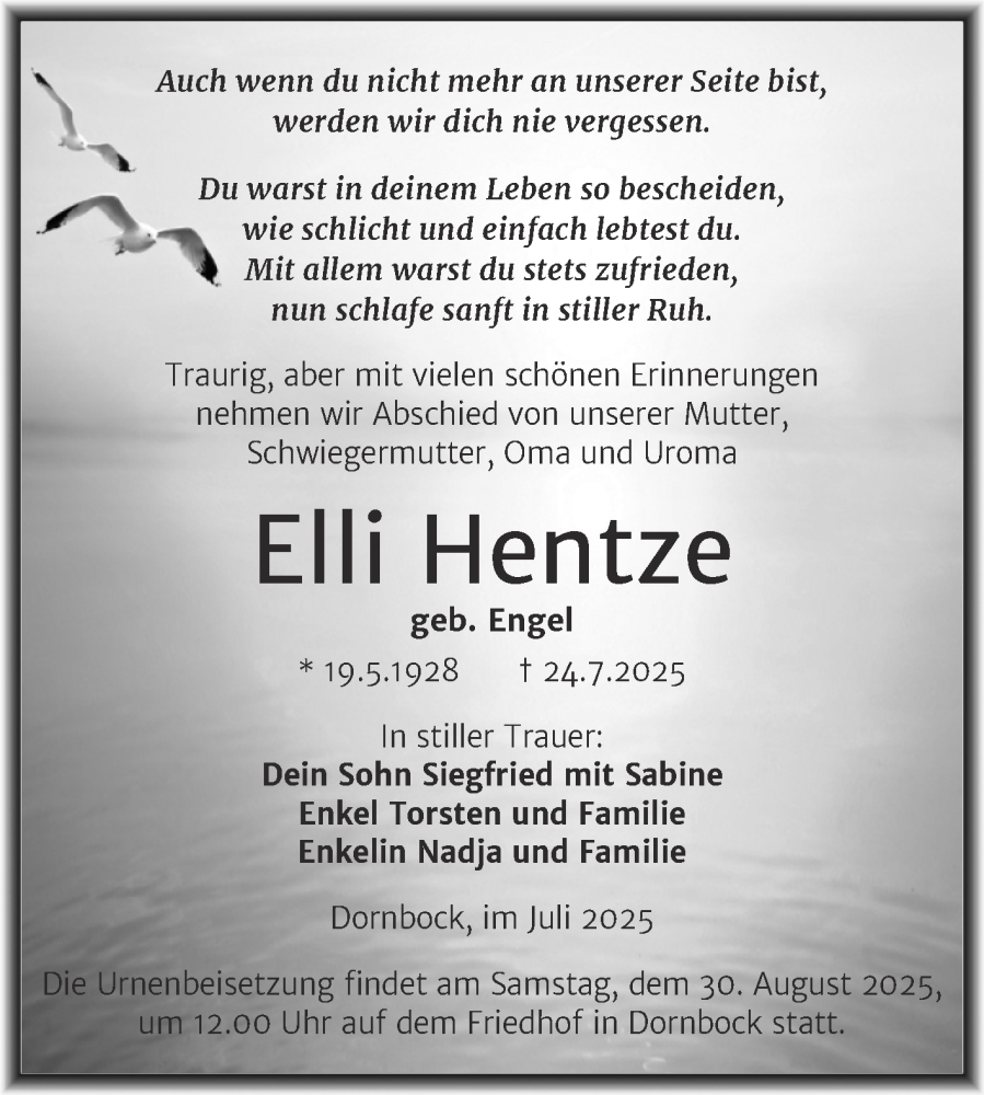 Hier finden Sie alle Traueranzeigen aus der Zeitung, die bisher für Elli Hentze erschienen sind. Weitere Traueranzeigen, die in der Zeitung erscheinen, werden hier ebenfalls aufgelistet