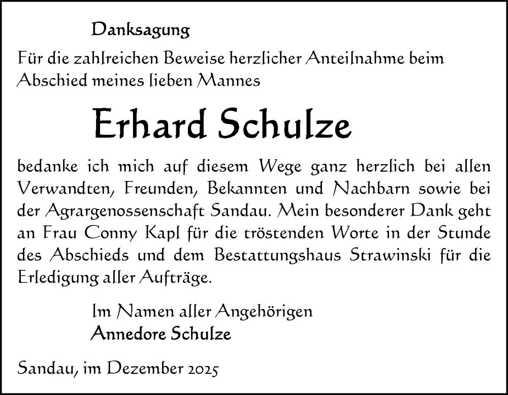 Hier finden Sie alle Traueranzeigen aus der Zeitung, die bisher für Erhard Schulze erschienen sind. Weitere Traueranzeigen, die in der Zeitung erscheinen, werden hier ebenfalls aufgelistet