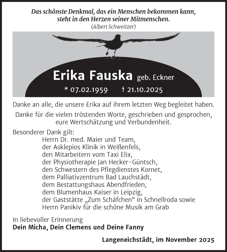 Hier finden Sie alle Traueranzeigen aus der Zeitung, die bisher für Erika Fauska erschienen sind. Weitere Traueranzeigen, die in der Zeitung erscheinen, werden hier ebenfalls aufgelistet