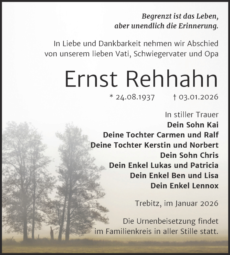 Hier finden Sie alle Traueranzeigen aus der Zeitung, die bisher für Ernst Rehhahn erschienen sind. Weitere Traueranzeigen, die in der Zeitung erscheinen, werden hier ebenfalls aufgelistet