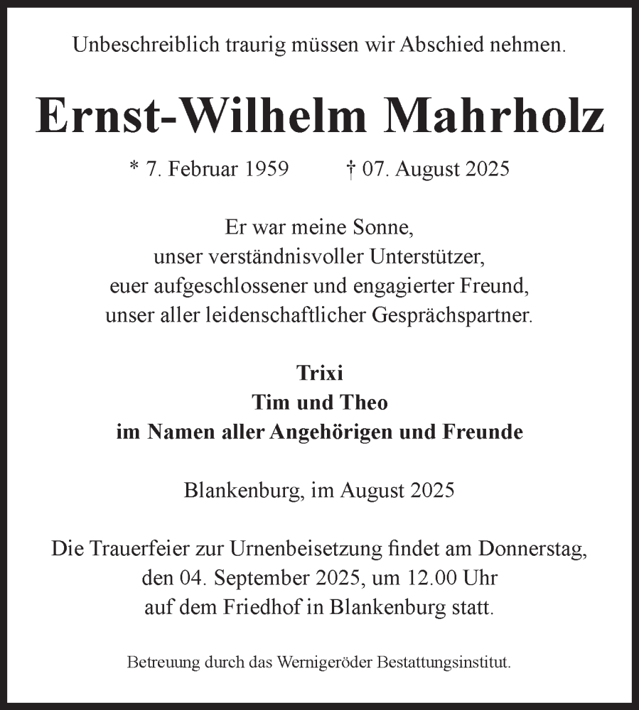 Hier finden Sie alle Traueranzeigen aus der Zeitung, die bisher für Ernst-Wilhelm Mahrholz erschienen sind. Weitere Traueranzeigen, die in der Zeitung erscheinen, werden hier ebenfalls aufgelistet