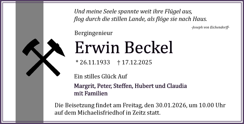 Hier finden Sie alle Traueranzeigen aus der Zeitung, die bisher für Erwin Beckel erschienen sind. Weitere Traueranzeigen, die in der Zeitung erscheinen, werden hier ebenfalls aufgelistet
