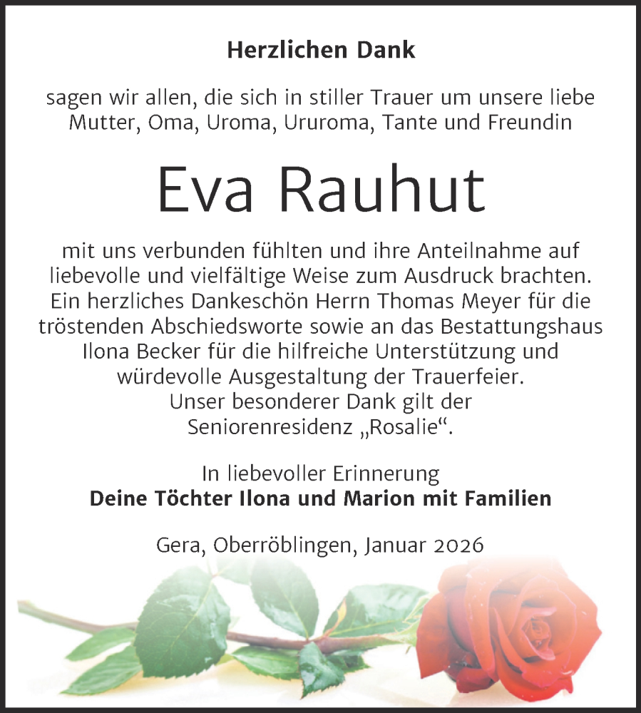 Hier finden Sie alle Traueranzeigen aus der Zeitung, die bisher für Eva Rauhut erschienen sind. Weitere Traueranzeigen, die in der Zeitung erscheinen, werden hier ebenfalls aufgelistet