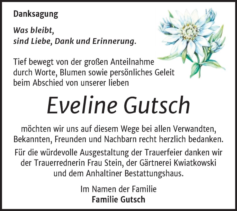 Hier finden Sie alle Traueranzeigen aus der Zeitung, die bisher für Eveline Gutsch erschienen sind. Weitere Traueranzeigen, die in der Zeitung erscheinen, werden hier ebenfalls aufgelistet