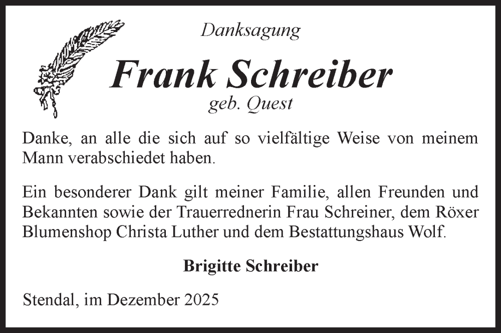 Hier finden Sie alle Traueranzeigen aus der Zeitung, die bisher für Frank Schreiber erschienen sind. Weitere Traueranzeigen, die in der Zeitung erscheinen, werden hier ebenfalls aufgelistet