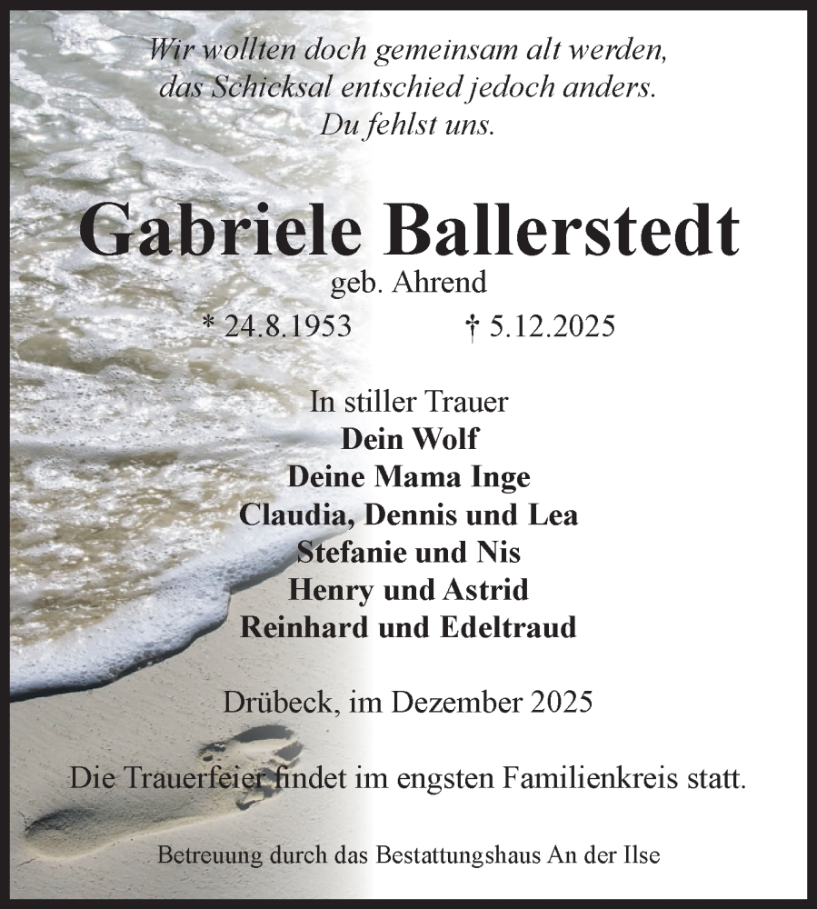 Hier finden Sie alle Traueranzeigen aus der Zeitung, die bisher für Gabriele Ballerstedt erschienen sind. Weitere Traueranzeigen, die in der Zeitung erscheinen, werden hier ebenfalls aufgelistet