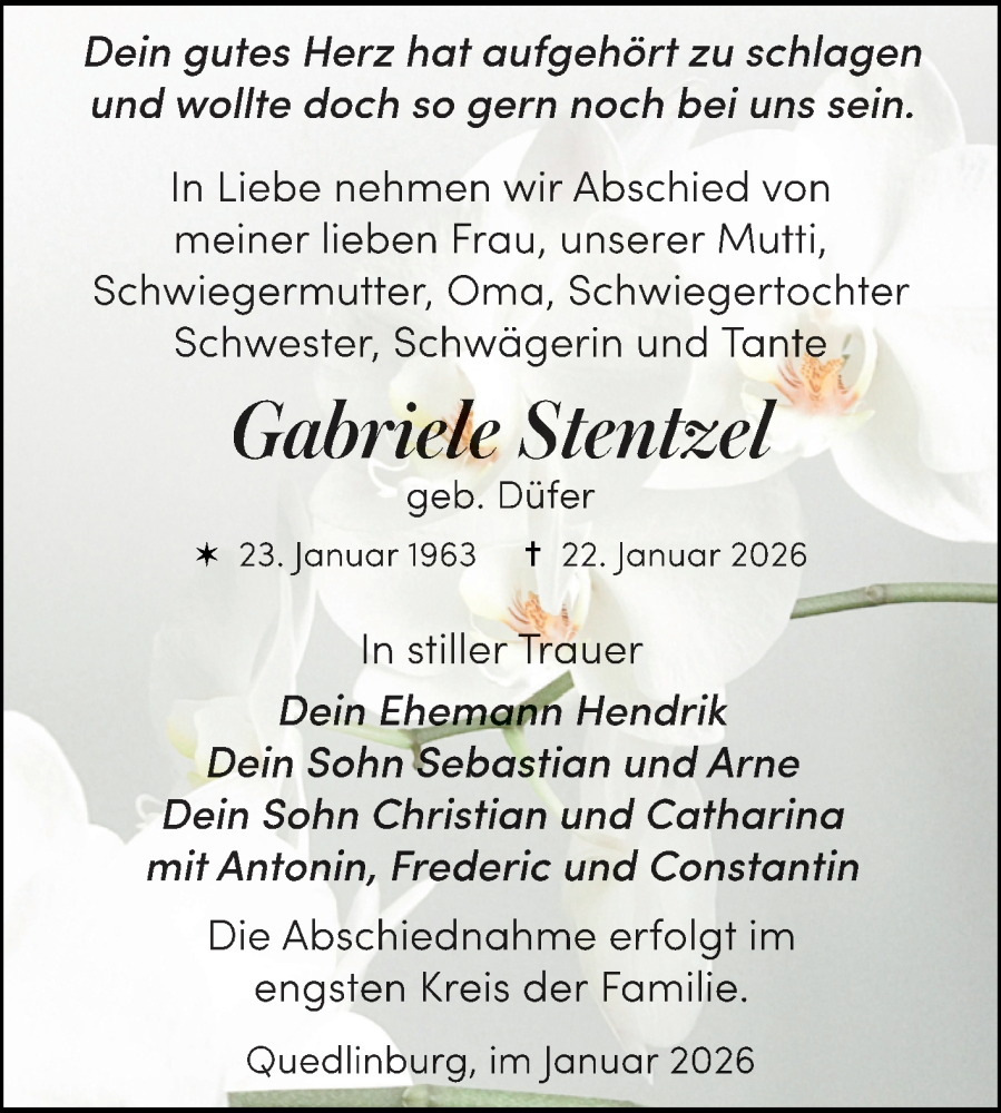 Hier finden Sie alle Traueranzeigen aus der Zeitung, die bisher für Gabriele Stentzel erschienen sind. Weitere Traueranzeigen, die in der Zeitung erscheinen, werden hier ebenfalls aufgelistet